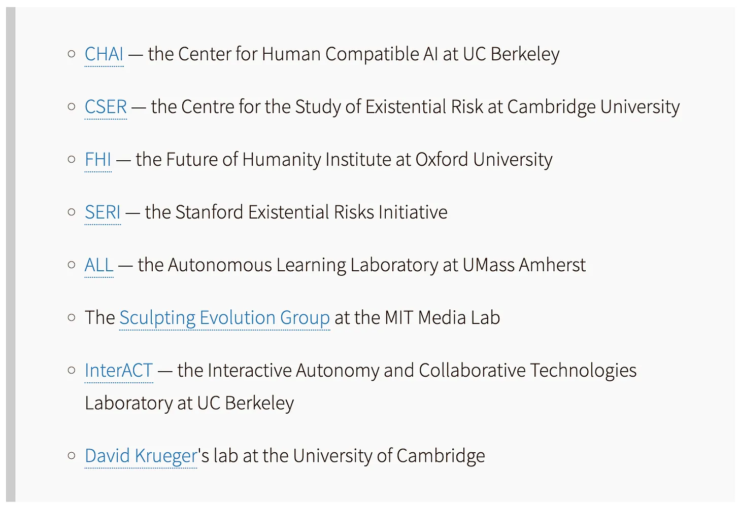 - Collaborations. Berkeley Existential Risk Initiative. Retrieved December 8, 2022, from https://web.archive.org/web/20221208223244/https://existence.org/collaborations/