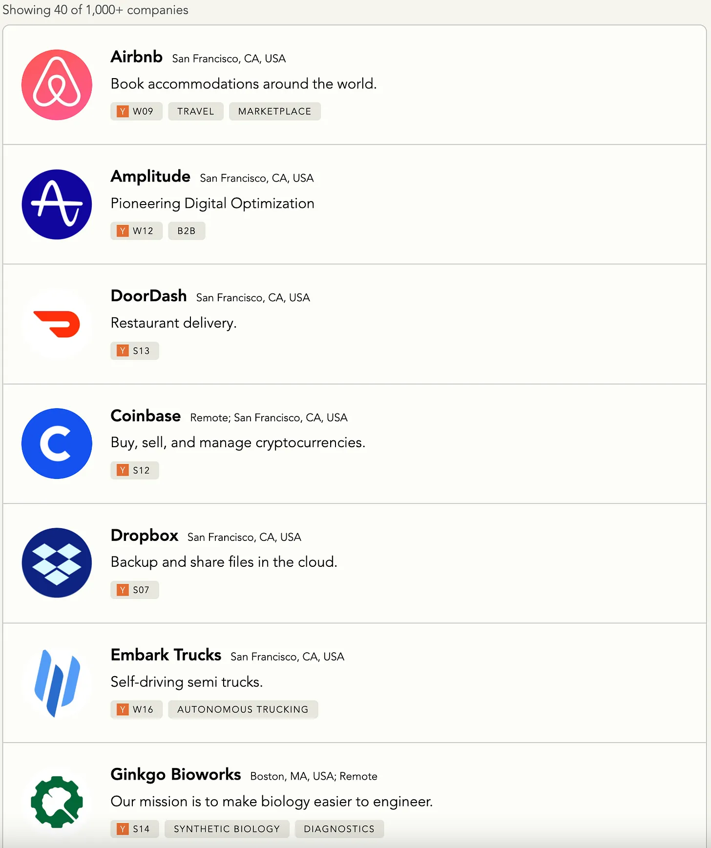 - The YC Startup Directory. Y Combinator. Retrieved November 25, 2022, from https://www.ycombinator.com/companies