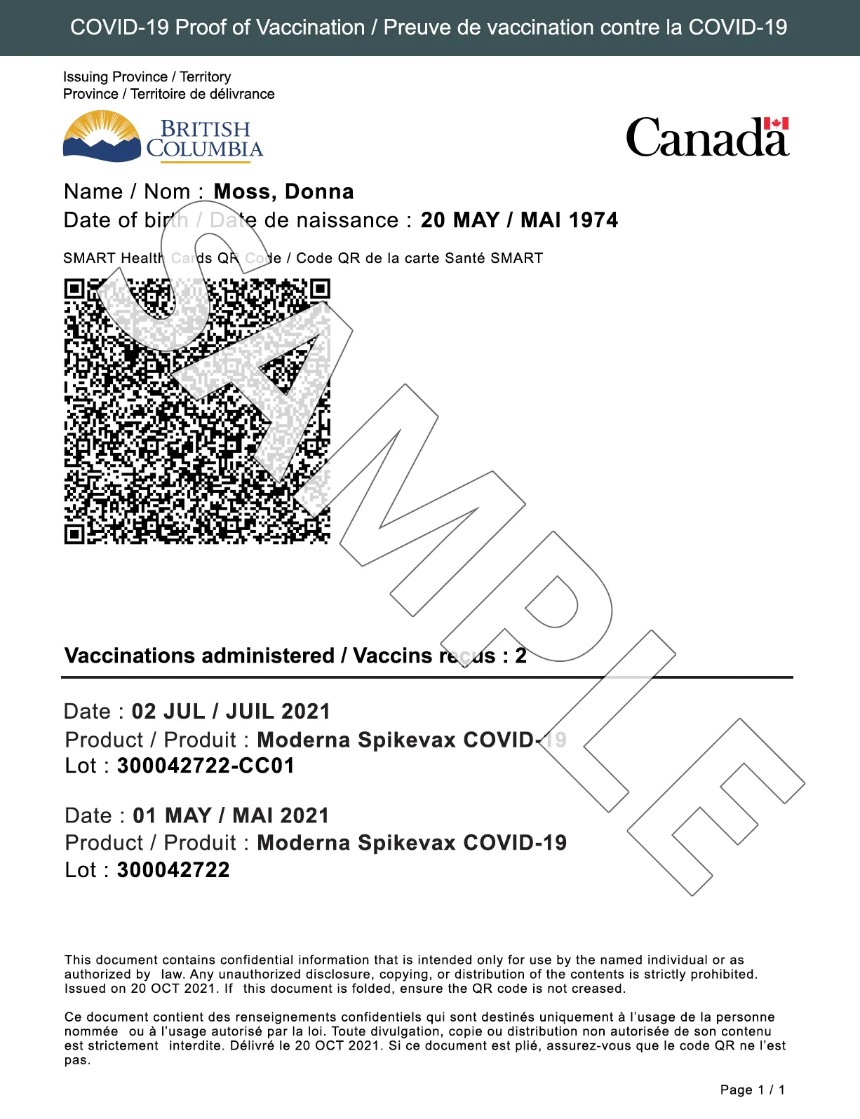 - Government Communications and Public Engagement. (2021, December 24). Proof of vaccination. Government of British Columbia. http://archive.today/2022.01.25-191946/https://www2.gov.bc.ca/gov/content/covid-19/vaccine/proof