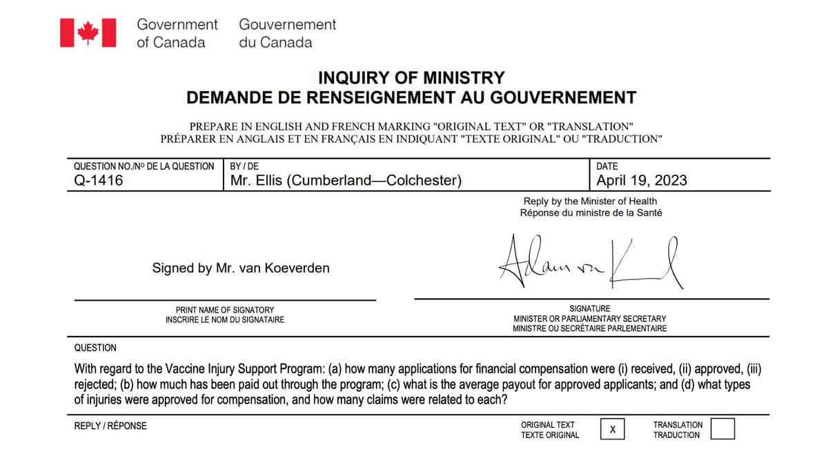 - June 16, 2023: Order Paper Question re: Adverse event reporting webpage